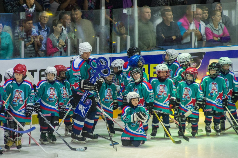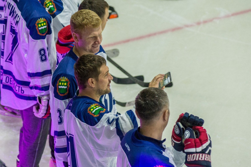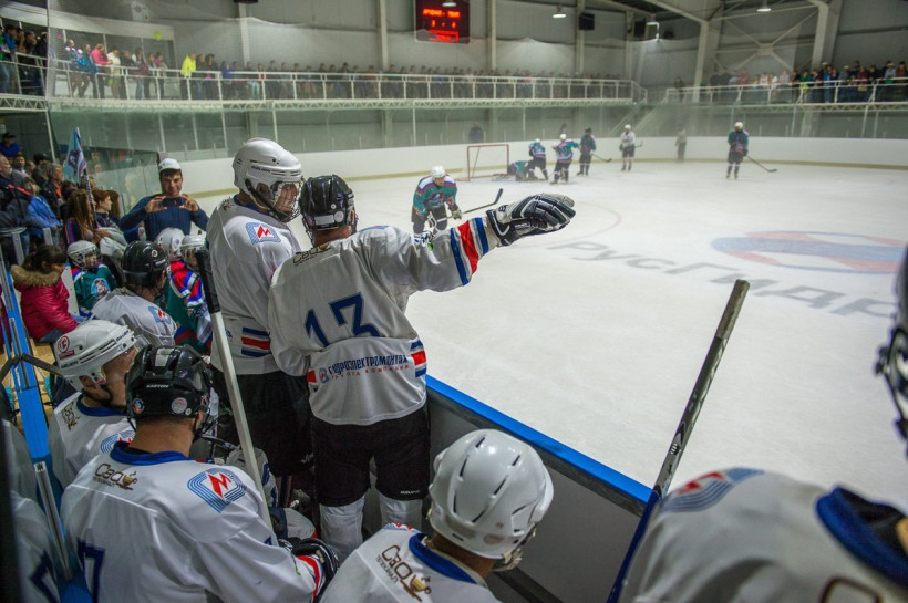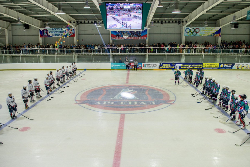 Ключ от арены строители торжественно передали главным «хозяевам» ледового дворца — юному хоккеисту Тимофею Иштокину и тренеру Андрею Жорову. Для будущего местного музея есть и первые экспонаты, в том числе шайба, сброшенная на лед губернатором. А также клюшка с подписью в честь первого памятного матча.
