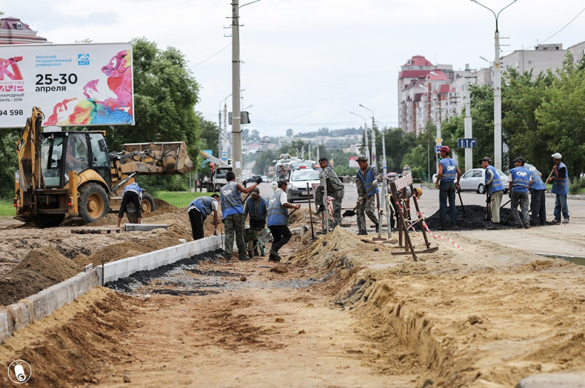 В Благовещенске на этой неделе должен завершиться ремонт на улице Ленина. 25 июля АКС на участке между Калинина и Комсомольской начала менять теплотрассу. Закончить работу и открыть улицу по плану должны 8 августа. Также полным ходом в городе идет реконструкция перекрестка Мухина и Игнатьевского шоссе. Дорожники в конце июля завершили первый этап ремонта, открыв проезд по Мухина. Сейчас работы идут на стометровом участке на Игнатьевском шоссе от Мухина в сторону кольцевой развязки. Его должны закончить к 1 сентября. После этого начнется третий этап реконструкции — ремонт шоссе в сторону Дьяченко. За тем как идут работы на двух магистральных улицах города, наблюдали фотографы Semenets Pro.