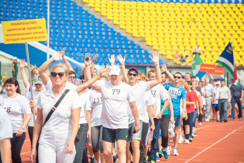 Сегодня, 12 августа, на стадионе «Амур» собрались чиновники почти со всех городов и районов Амурской области. В Благовещенске прошел первый фестиваль «Готов к труду и обороне». Нормы ГТО сдали около 200 муниципальных и государственных служащих. Наравне со всеми отжимались, стреляли, бегали, качали пресс и тягали гирю министр здравоохранения Николай Тезиков и министр спорта Юрий Кретов. За спортивным праздником наблюдал фотокорреспондент АП Дмитрий Тупиков.