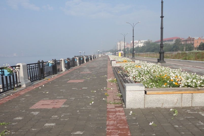Вандалы разбомбили вазоны и клумбы на набережной Амура