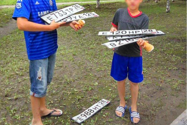 Подростки из Благовещенска продают водителям потерянные во время ливня госномера