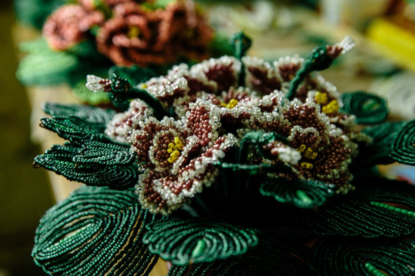 Мастерица уверена, что бисер настолько универсальный материал, что с его помощью можно сделать все, что угодно: украшения, оплетку шкатулок, чехлы на флешки и телефон. Однако лучше всего у Ольги из разноцветных бисеринок получаются комнатные цветы. В горшочках с позолоченными камнями «растут» розы, фиалки, лили, маки, гиацинты, хризантемы и цикламены.