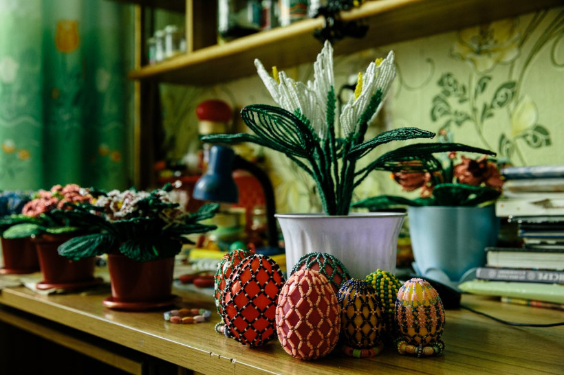 Очередной шедевр Ольга выискивает в интернете на видеоуроках или в специальных книгах по бисероплетению. Сейчас ее настольным изданием стало пособие «Уроки по плетению комнатных растений. Больше всего женщине нравится создавать свои любимые фиалки. Кстати, помимо искусственных на подоконниках полно живых цветов различных оттенко». «На одну фиалку уходит две 50-граммовые пачки голубого и синего бисера и пачка зеленого. Время работы — три дня, — пояснила жительница Золотоножки. — Занимаюсь хобби только по вечерам, иногда бывает и ночью сижу, когда в азарт вхожу. Бисероплетение меня успокаивает, сразу все мысли чище становятся».