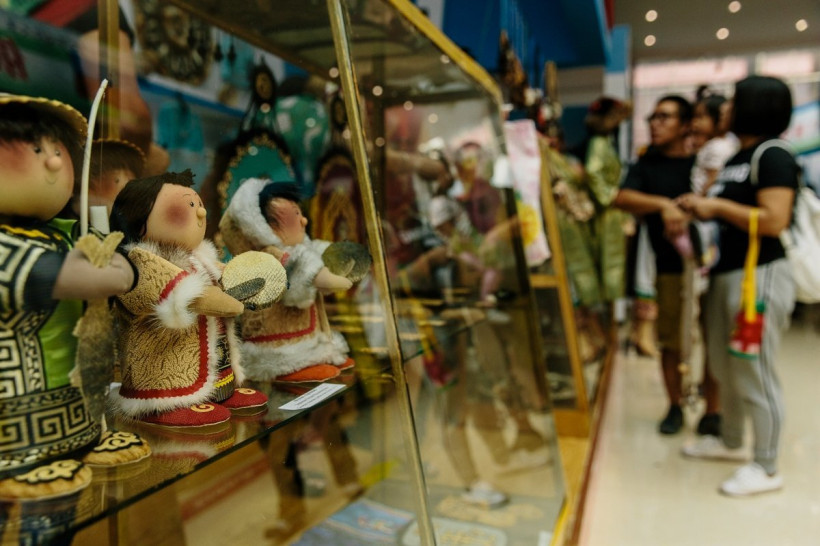 Богато на выставке была представлена культура нанайцев: ковры, сшитые из кусочков меха, обереги, элементы одежды из шкур животных и выделанной рыбьей кожи, украшенные национальной вышивкой. Кстати, на выставке можно было увидеть и искусно выполненный ковер, которому более 40 лет. Работу по достоинству оценили китайские покупатели, но хозяева экспозиции объяснили, что ковер не продается. Молодые мастерицы из Хабаровска — сестры Барановы — привезли в Хэйхэ кукол в нанайских национальных костюмах.