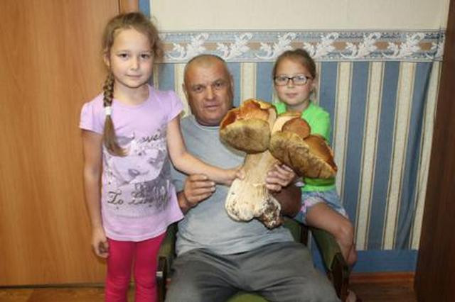 Житель Зеи Николай Леонтьев нашел в лесу огромный двухкилограммовый белый гриб. Добычу в 2 200 граммов с тихой охоты Николай Дмитриевич принес домой из леса в районе КПД. Размер гриба оказался больше, чем у предыдущего гиганта, найденного в начале августа в зейских лесах. Тогда заядлая грибница Елена Епифанова обнаружила в лесу подосиновик внушительных размеров весом 940 граммов.