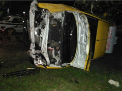 Столкновение с переворотом: в Благовещенске ночью встретились два такси