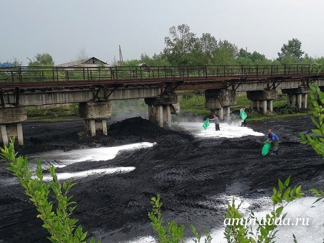 На место происшествия работали спасатели. Они засыпали загрязненные участки специальным реактивом — сорбентом, который впитывает в себя разлитые нефтепродукты. Потом его собирали с поверхности воды и вывозили. Также была проведена обработка сорбентом прибрежных территорий реки Буреи.