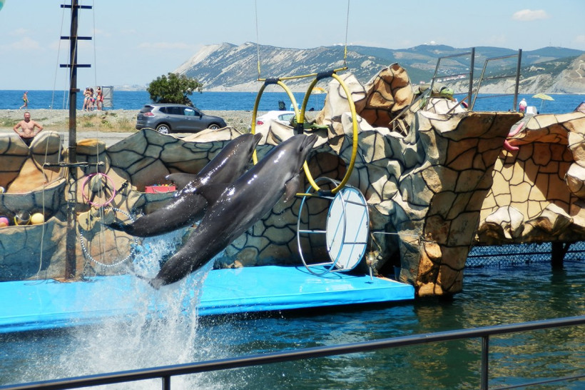 Дельфинарий на Большом Утрише позиционирует себя как единственный в России, который находится в естественной акватории под открытым небом. Сидишь на представлении и любуешься не только трюками животных, но и окружающим пейзажем — бескрайним синим морем и кромкой гор, тающих в дымке.