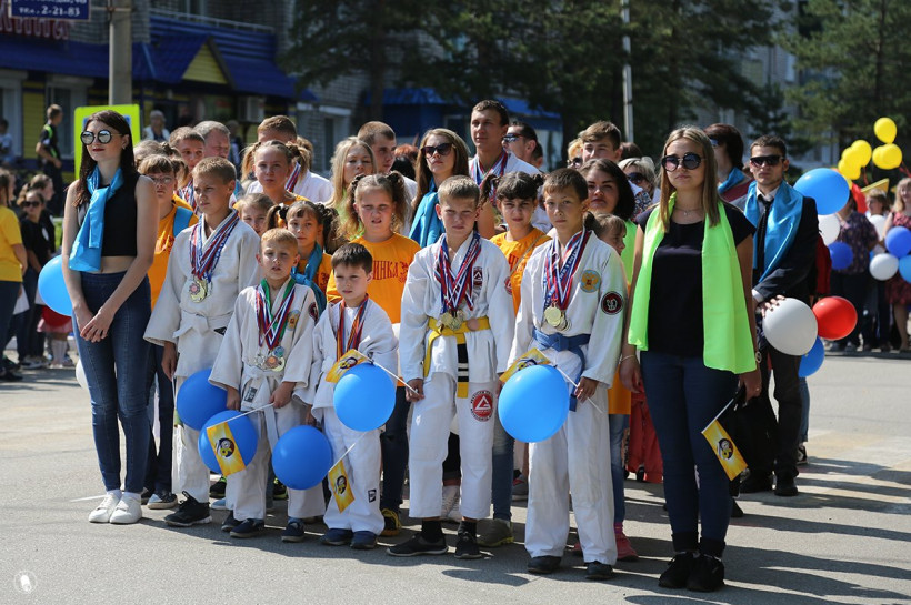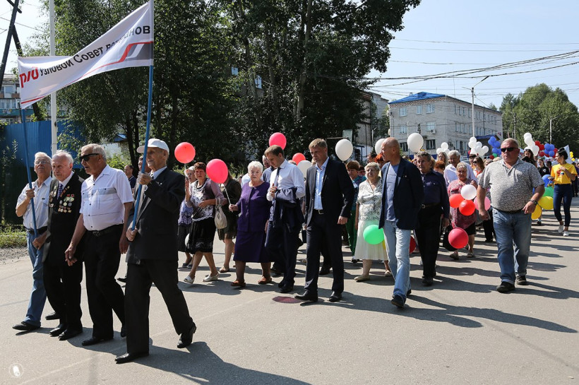 В полдень на главной улице Сковородина выстроились праздничные колонны муниципального образования, ветеранов, общественных организаций, трудовых коллективов.