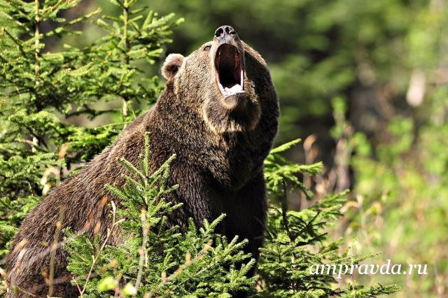 => Существует мнение, что медведь, вставая на задние лапы, выражает агрессивные намерения. На самом деле это не так, он принимает такую позу, чтобы лучше рассмотреть то, что его заинтересовало и предупредить о своем присутствии. А вот если медведь начинает, глядя на вас, делать выпады в вашу сторону, это — сигнал, что вы нарушили его территорию. Постарайтесь уйти в противоположную сторону от хищника. Зверь перестанет нападать, если почувствует, что угроза устранена.
