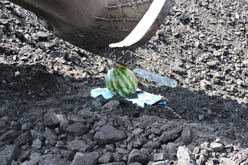 Машинистов добычных экскаваторов судили по погрузке угля в железнодорожные вагоны. Критерии сохраняются из года в год: это тандем скорости и качества работы. Погрузка должна быть плавной, без рывков, с максимальным наполнением ковша при черпании. Повседневный труд экскаваторщика и в этой номинации был усложнен творческим заданием. Горняки резали арбуз ножом, приваренным к ковшу экскаватора. Тут нужен был не только профессионализм, но и удача.