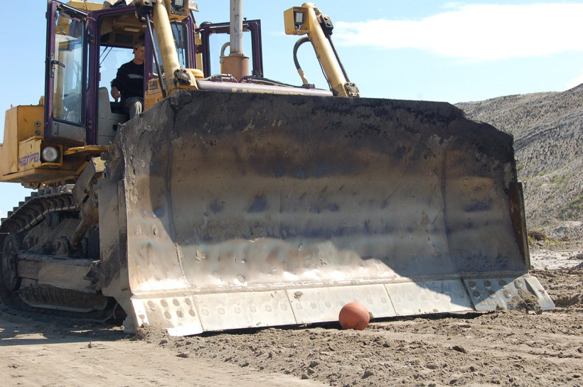 В завершении бульдозер должен был подъехать задним ходом к рюмке с яйцом и без промаха разбить его клыком-рыхлителем.