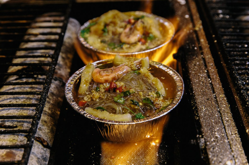 В этом году на улицах Хэйхэ очень популярны устрицы, мидии и морские гребешки на гриле. Раковину с моллюском заполняют крахмальной лапшой, добавляют соевый соус, чеснок, немного воды, мелкие креветки и жгучий красный перец. Нафаршированные таким образом половинки раковин ставят на решетку и варят несколько минут. Есть нужно палочками прямо из ракушки. Кстати, лапшу здесь могут приготовить не только в раковинах, но и в кокотницах.