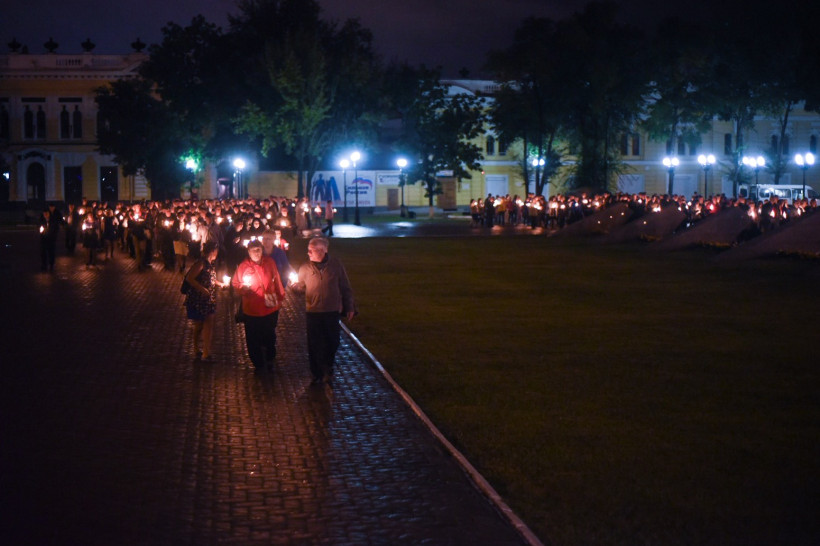 Фоторепортаж с акции памятиТрадиционная акция «Свеча памяти» прошла сегодня, 2 сентября в 21:00 на площади Победы в Благовещенске в честь 71-летия окончания Второй мировой войны. Несмотря на пасмурную погоду, отдать дань погибшим советским воинам собралось более двух сотен горожан. Среди присутствующих — ветераны войны и боевых действий, курсанты, учащиеся вузов и ссузов. Также в мероприятии поучаствовали и солисты группы «Ростов» Асватур Сагирян и Олег Гонцов, а также бард-пограничник Владимир Мазур. Артисты накануне дали полуторачасовой концерт в Доме офицеров. Неравнодушные почтили минутой молчания память воинов—амурцев, погибших при обороне родины, возложили свечи к памятнику, погибшим на войне и Стене Памяти.