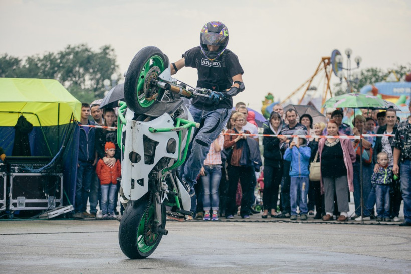 На необычной выставке «железных коней», которая прошла сегодня, 3 сентября, на площади Общественно-культурного центра, выбирали самый старый, самый шумный и самый мощный мотоцикл. Дополнительными номинациями стали «Мотоледи», «Детский мотовзгляд», «Самый крутой прикид» и приз зрительских симпатий. Возле ОКЦ собрались и техника советских времени, и современные модели гоночных мотоциклов. Организаторы мероприятия  — общественная организация «Мотопатриот» приурочила праздник к 71-летней годовщине окончания Второй мировой войны.