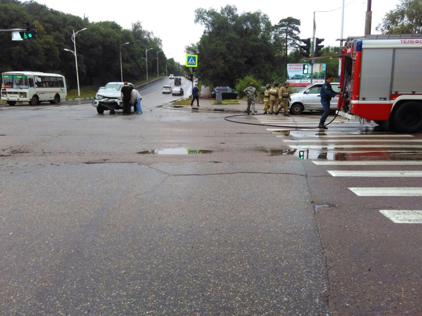 Сегодня, 3 сентября, в Благовещенске произошла авария с пострадавшими. Микроавтобус выскочил на красный сигнал светофора и угодил под джип. В автобусе ехали китайские граждане, им и понадобилась медицинская помощь.
