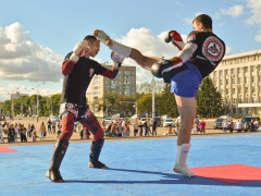 Благотворительный марафон боевых искусств «12 часов во имя добра» объединил бойцов карате-киокушинкай, дзюдо, айкидо, кэндо, тайского бокса, ушу, джиу-джитсу и рукопашного боя, пишет ПортАмур. Сегодня на площади Ленина в режиме нон-стоп шли поединки , а также показательные выступления. В этом году спортсмены выступали с целью собрать деньги на специализированную детскую площадку для детского онкологического центра. За выступлениями наблюдал фотокорреспондент АП Андрей Ильинский.