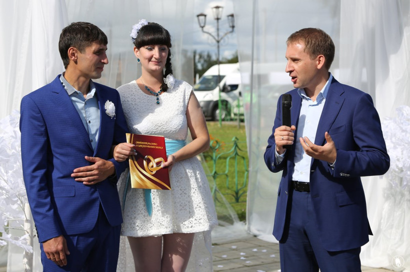 - Сегодня у вас важнейшее событие в жизни — создание семьи. Оно совпало с днем рождения района, событием, которое имеет большое значение для всех ваших земляков. А значит, у вас – двойной праздник! -подчеркнул Александр Козлов. - Вы оба родились и выросли на этой земле. Владимир служит в одной из воинских частей, а Полина работает на одном из аграрных предприятий. На мой взгляд, это очень символично — отражает специфику района. У территории замечательные перспективы, и я уверен, они также будут позитивно отражаться на будущем вашей семьи.