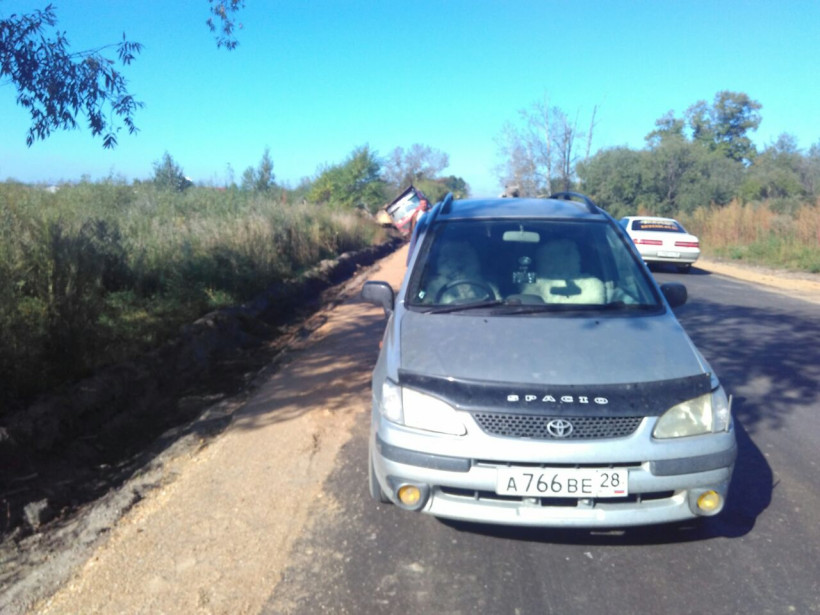 Сегодня, 11 сентября, в Благовещенске из-за японской легковушки в кювете оказался грузовой автомобиль.
