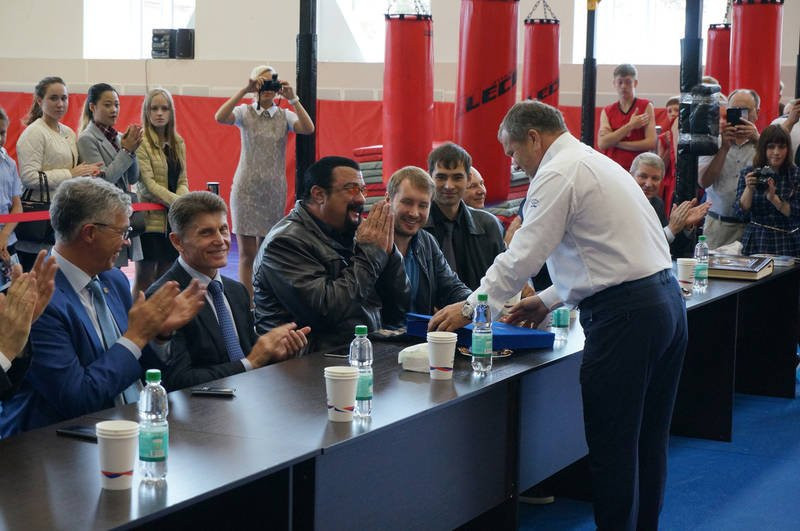 Стивен Сигал прибыл на Сахалин. Звезда Голливуда станет гостем международного кинофестиваля «Край света». Сегодня, 15 сентября, американский актер посетил недавно построенный спортивно-оздоровительный комплекс «Флагман» вместе с губернатором Сахалина Олегом Кожемяко, сообщается на официальном сайте правительства Сахалинской области.