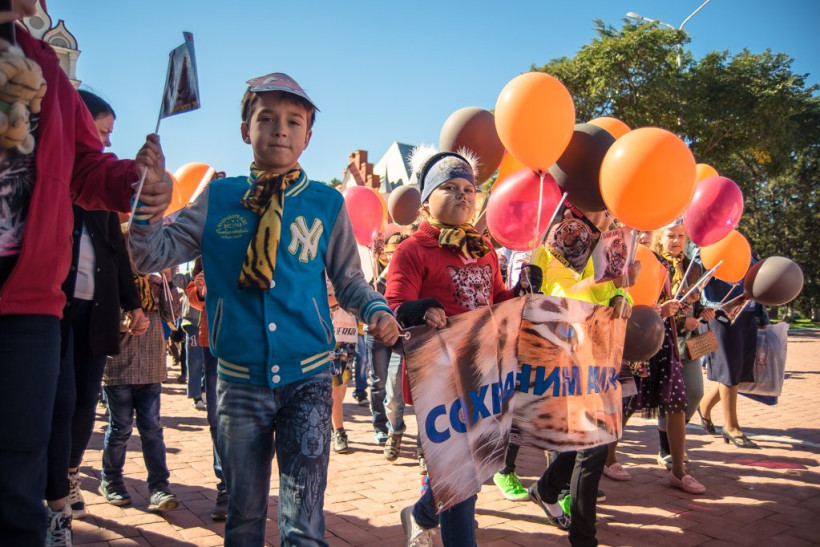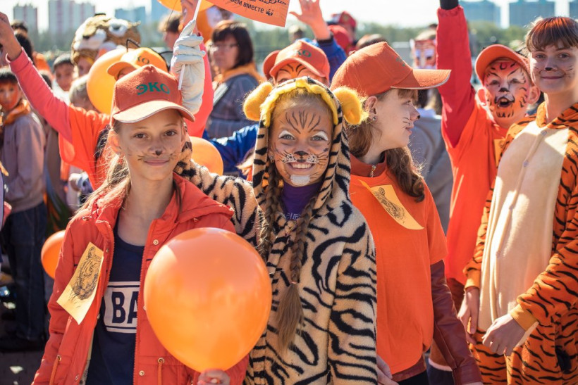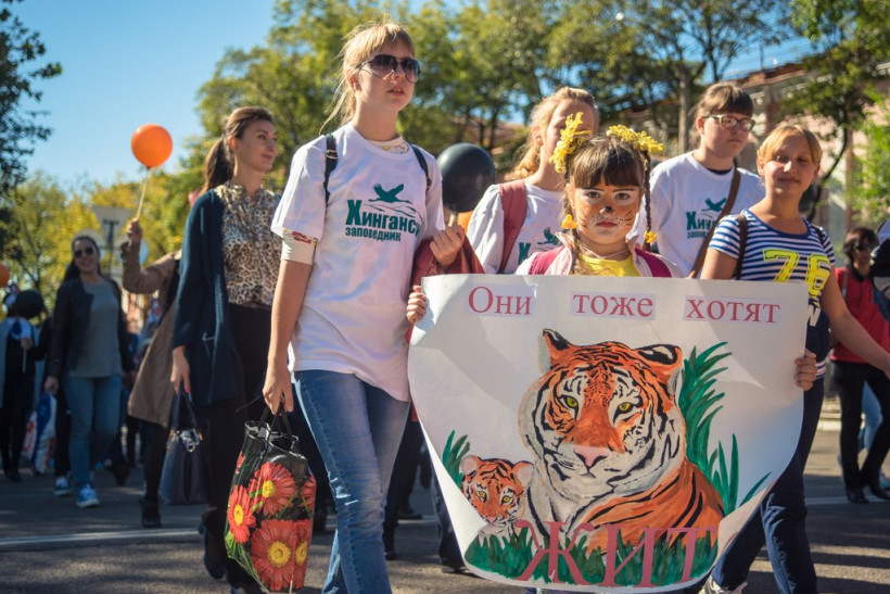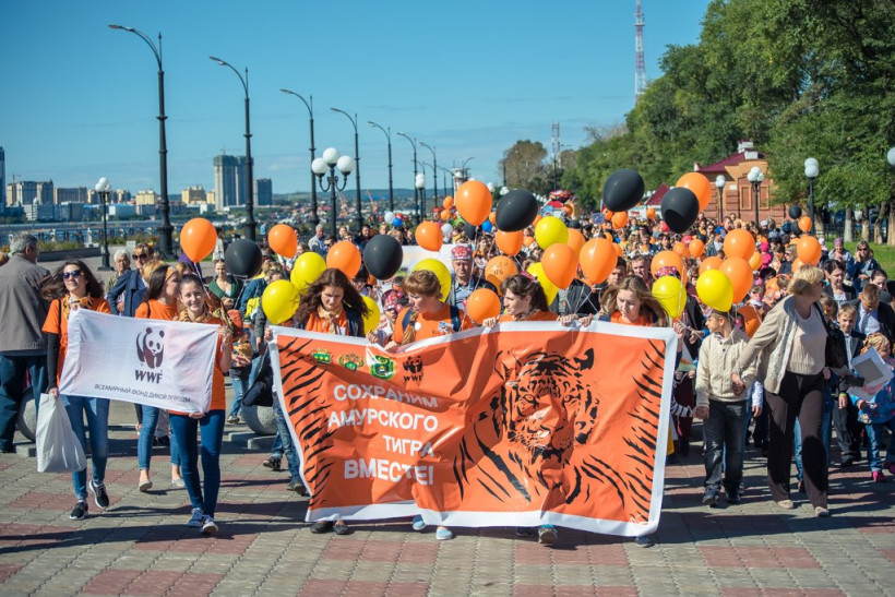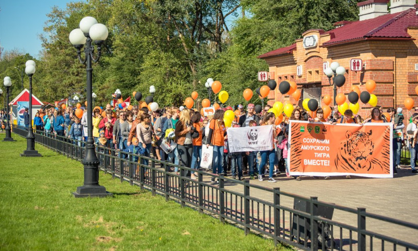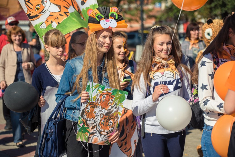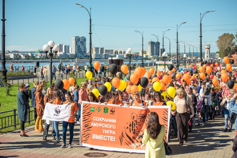 Переодетые горожане выступили в защиту редких животныхВ Благовещенске сегодня прошло необычное шествие. Около четырех сотен горожан 17 сентября переоделись в костюмы амурского тигра и прошлись по набережной реки Амур — от переулка Уралова до улицы Богдана Хмельницкого. Участники мероприятия призывали сохранить редкий вид животных. После шествия около областного Дома народного творчества развернулся Экологический Арбат. Здесь все желающие могли поучаствовать в мастер-классах, порисовать больших полосатых кошек, как на бумаге, так и на своем лице. Мероприятия в защиту амурского тигра будут проходить в областном центре в течение недели. Горожан ждут выставки, викторины и мастер-классы.