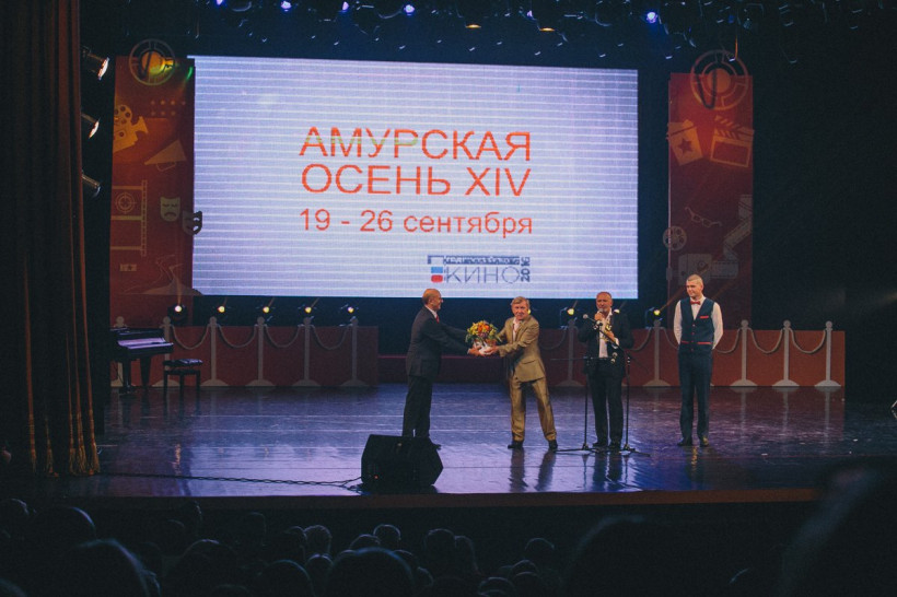 Фоторепортаж с церемонии открытия фестиваляЧетырнадцатый по счету фестиваль кино и театра «Амурская осень» открылся вечером 19 сентября в благовещенском Общественно-культурном центре. Церемония открытия началась со знаменитой песни Марка Бернеса «О кино», которую исполнил президент фестиваля Сергей Новожилов. Во время концертной программы, которая длилась более полутора часов, с музыкальными номерами выступили актриса Екатерина Волкова, актер Евгений Дятлов, зажигательный танец морячков показали актеры Влад Канопка и Макар Запорожский. А народная песня в исполнении актерской четы — Ольги Лапшиной и Сергея Старостина — заставила зрителей замереть, обратившись в слух. За открытием звездной «осени» наблюдал фотокорреспондент АП Сергей Лазовский.