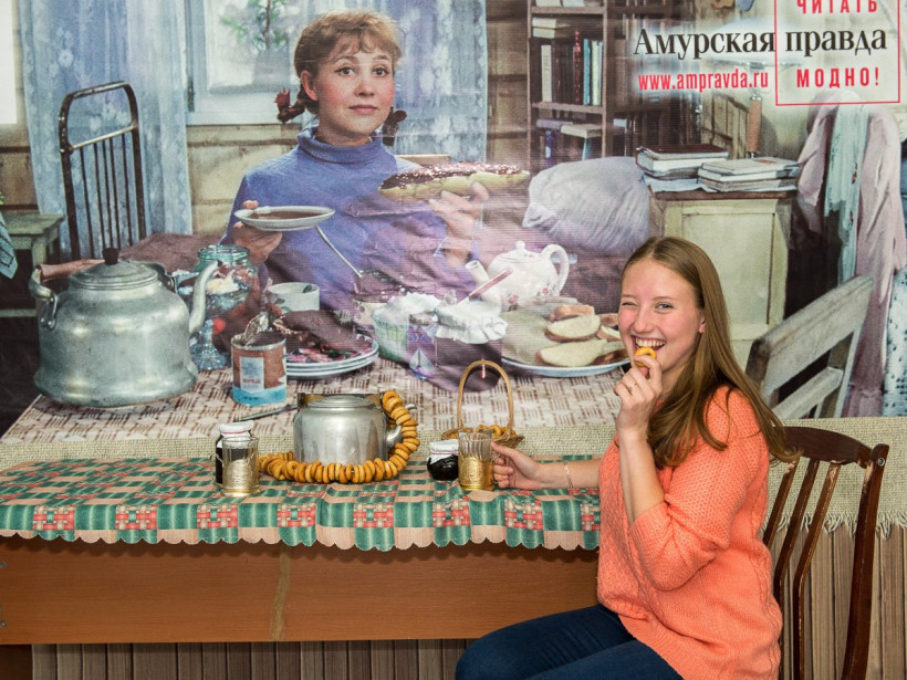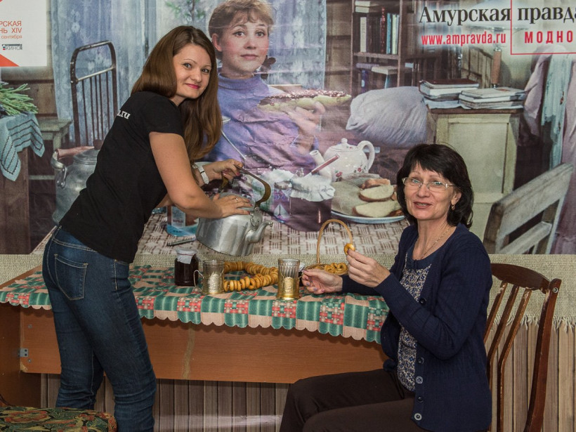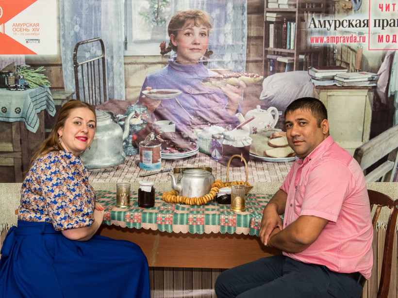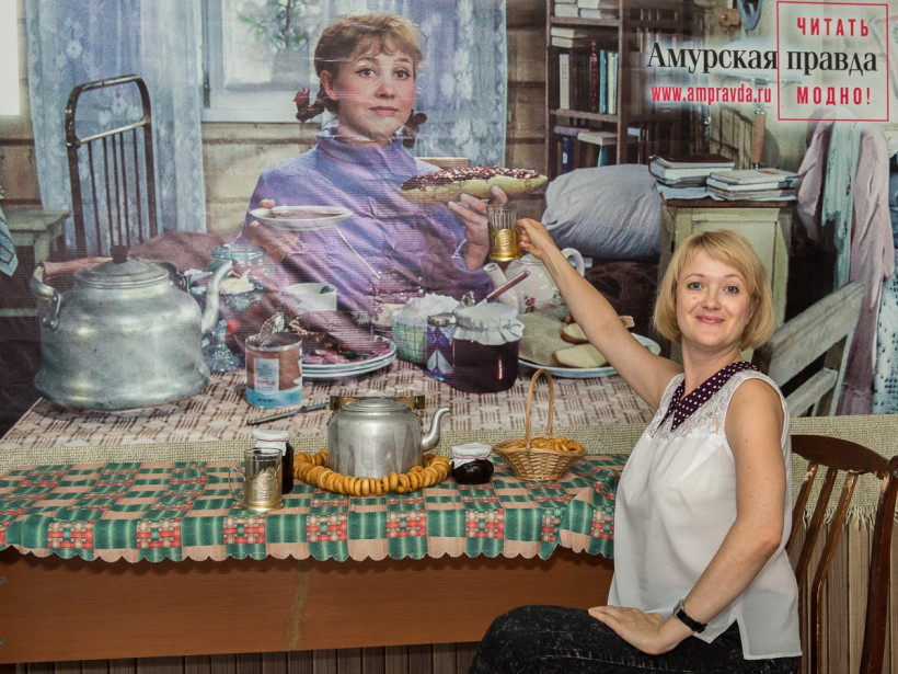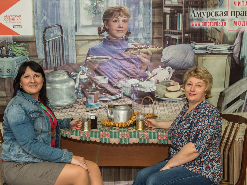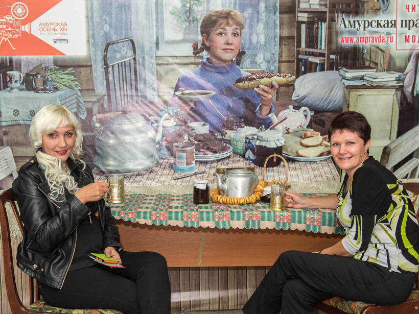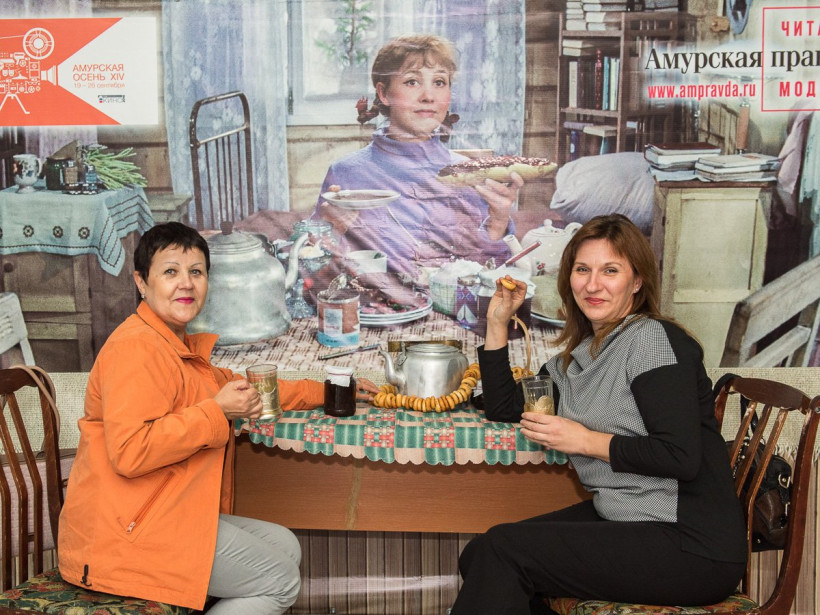Четвертый день фотосалона АП собрал в кадре в основном представительниц прекрасного пола. Однако попить чайку с Тосей согласились и несколько мужчин, среди которых — журналист и руководитель благовещенского выставочного зала Павел Савинкин. 25 сентября посетителей спектаклей «Амурской осени» в холле будет ждать Дмитрий Нагиев. Оставить с ним снимок на память поможет профессиональный фотограф Андрей Ильинский. Также во время работы фотосалона можно будет подписаться на газету «Амурская правда». Ищите фото на нашем сайте в разделе «Фотогалереи» и скачивайте их для семейного альбома. Фотосалон АП будет работать до 26 сентября.