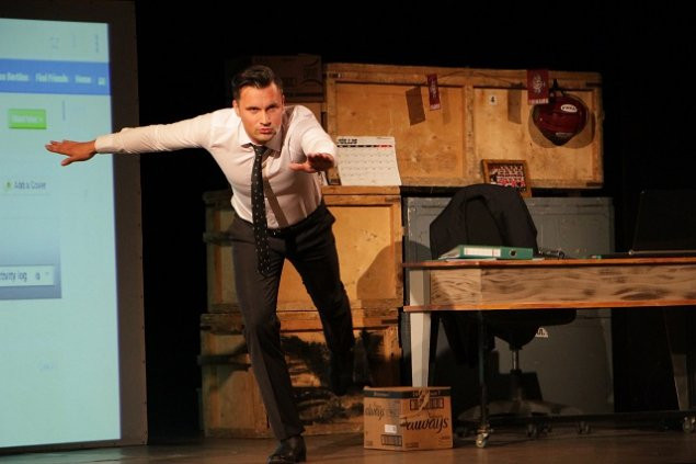 На сцене театра драмы в рамках внеконкурсной программы «Амурской осени» он сыграл моноспектакль Facebook, герой которого иронизирует над зависимостью от интернета, но в то же время находит в этом явлении положительные стороны.