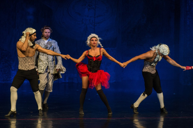 Но главное оружие спектакля — музыка и танцы. Прекрасные композиции Глеба Матвейчука органично вкрапляются после каждой сцены. Сам же артист легко импровизирует голосом, беря самые высокие ноты. Остальные герои тоже на высоте, однако не все пели вживую. Вокала Александра Балуева было немного, последняя песня в паре с Евгенией Рябцевой звучала уже под фонограмму.