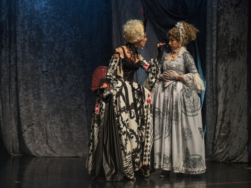 Настоящим открытием и главным украшением спектакля стала искрометная игра Эльвины Мухутдиновой (мадам Воланж, мама Сесили). Каждый выход на сцену первой сплетницы Парижа сопровождался бурными аплодисментами. Зал хохотал до слез и при появлении Александра Боброва (Азалан, слуга Вальмона). Поразила и Виктория Жукова (маркиза де Мертей), самоуверенная вначале и совершенно раздавленная в конце действия.