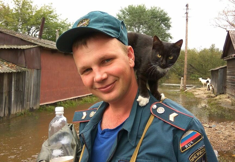 Амурский спасатель привез котенка из затопленного приморского села