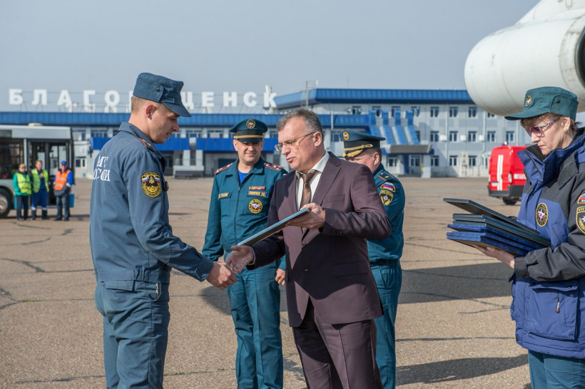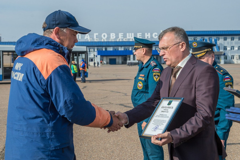 Ребят, участвовавших в ликвидации последствий тайфуна, обрушившего на Приморский край, поприветствовал и поздравил с возвращением домой начальник амурского главного управления МЧС России Матвей Гибадулин. Он отметил, что аэромобильная группировка из Приамурья выполнила свои задачи на отлично. За проделанную работу спасателей и пожарных наградили почетными грамотами губернатора и начальника приморского главного управления МЧС России. А в День спасателя они получат благодарственные письма от губернатора Амурской области и ведомственные награды за ликвидацию ЧС.