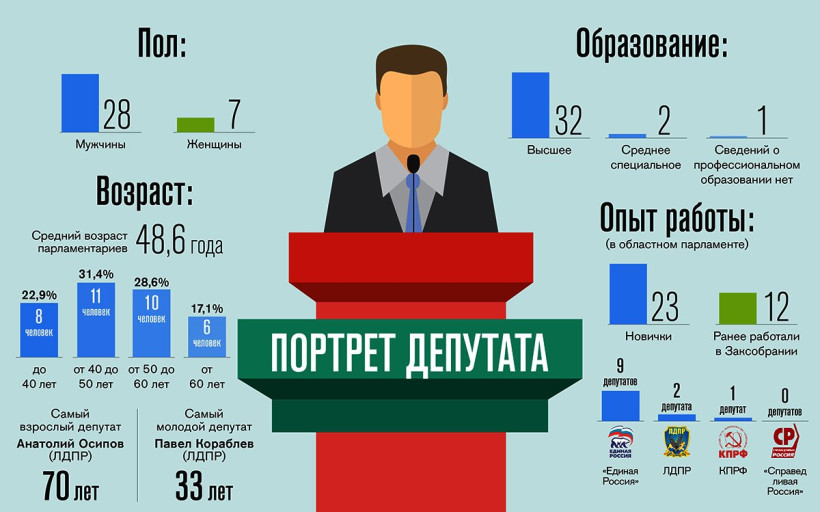 Инфографика АП: Большинство депутатов Заксобрания — мужчины до 50 лет