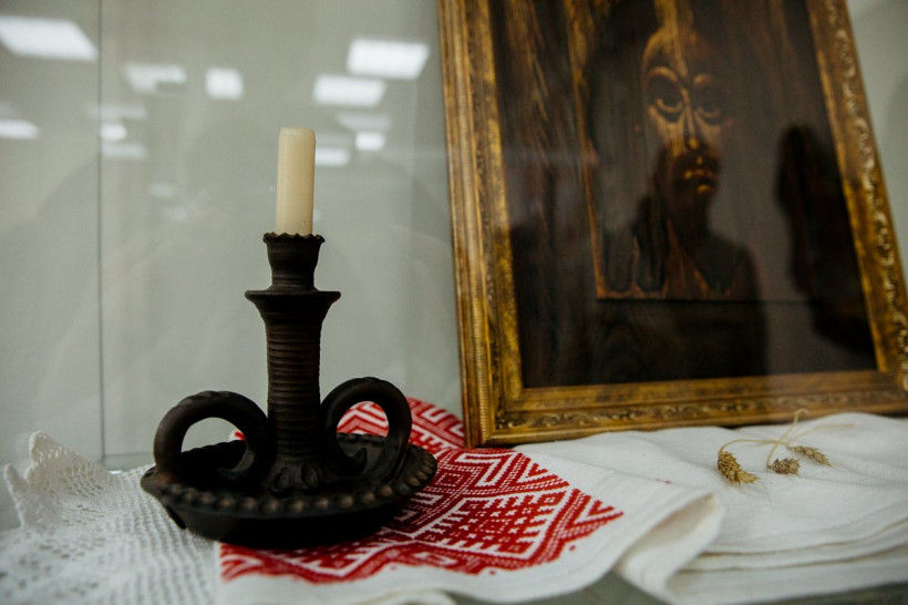 Среди традиционных мечей, щитов, кольчуг и шлемов попадаются настоящие «жемчужины». Например, рубаха из домотканой ткани. «Благовещенец сам сделал эту ткань, а потом сшил рубаху. — Есть у нас мужчины, которые не только шьют, но и вышивают. А еще делают замечательные аксессуары из кожи».