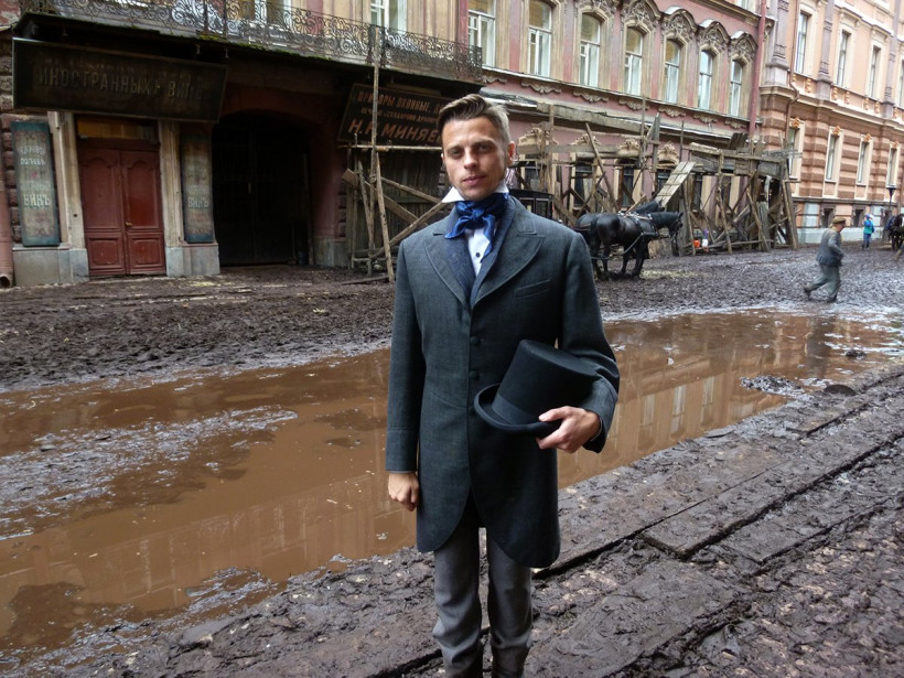И тут я увидел объявление, что набирают группу мужчин на роль солдат в исторический полнометражный фильм. Это интересно! Пришел в назначенное время на киностудию «Ленфильм». Народу оказалось очень много. Администратор попросил нас встать в большой круг. Так ждали режиссера полтора часа. А кастинг я прошел за пять минут. Моя внешность, точнее, прическа, не совсем подходила солдату, и я получил роль обычного прохожего. На примерке мне выдали шерстяные брюки с высокой талией, рубашку цвета морской волны с пристегивающимся накрахмаленным воротничком, темно-бордовую жилетку, коричневые ботинки на пуговицах, куртку и картуз. Реквизит из запасов «Ленфильма» с разными пометками от предыдущих проектов, в том числе от «Распутина», съемки которого завершились незадолго до начала «Дуэлянта».