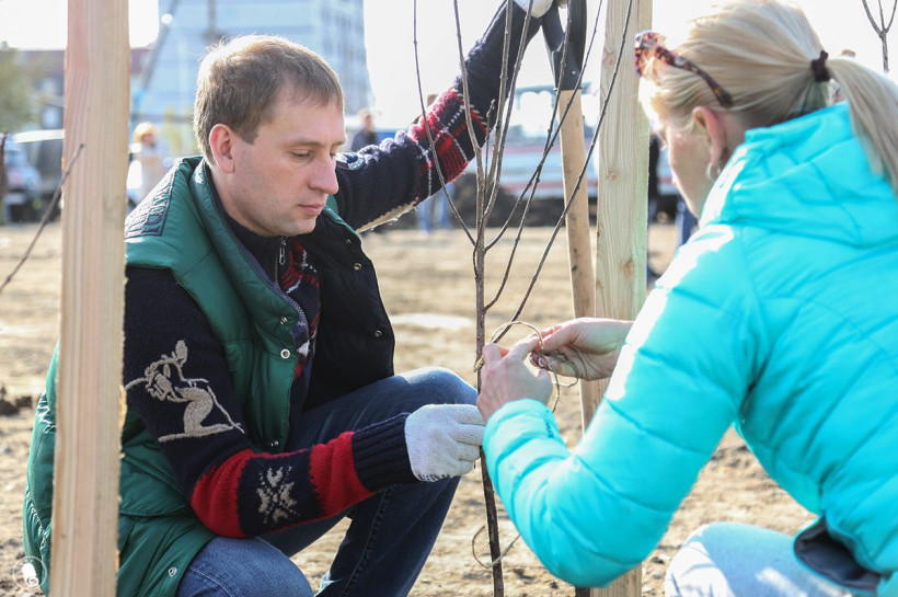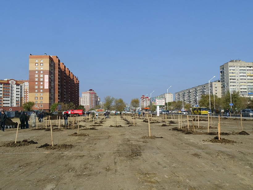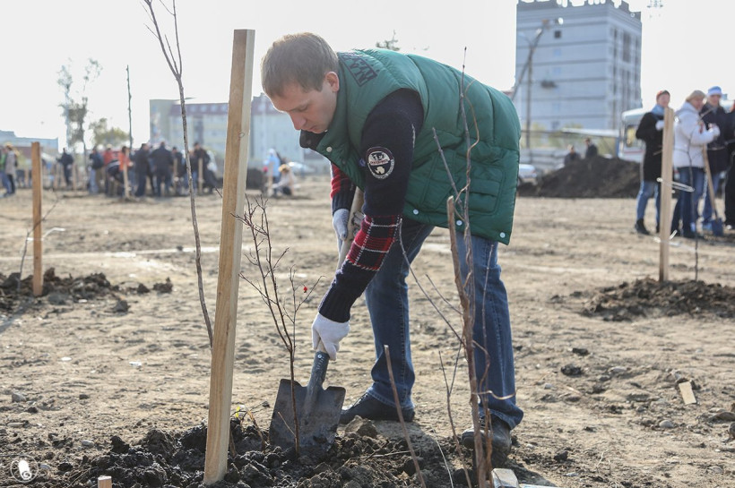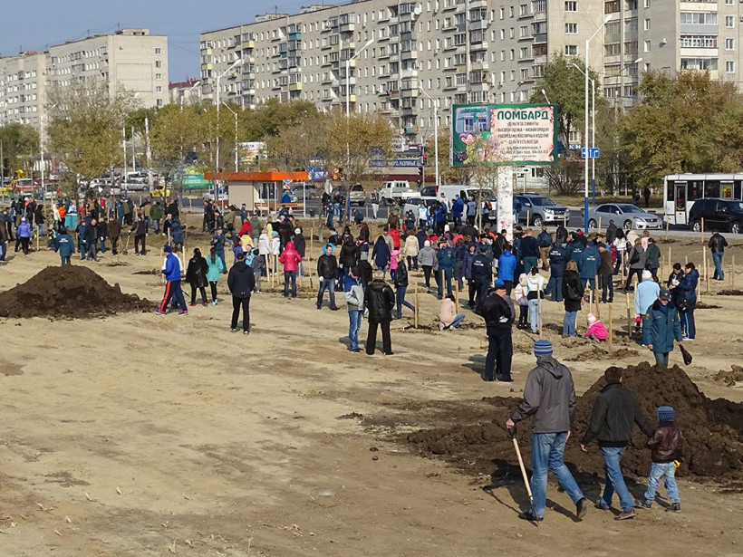 В микрорайоне Благовещенска появился новый сквер: за час здесь посадили более 450 деревьев