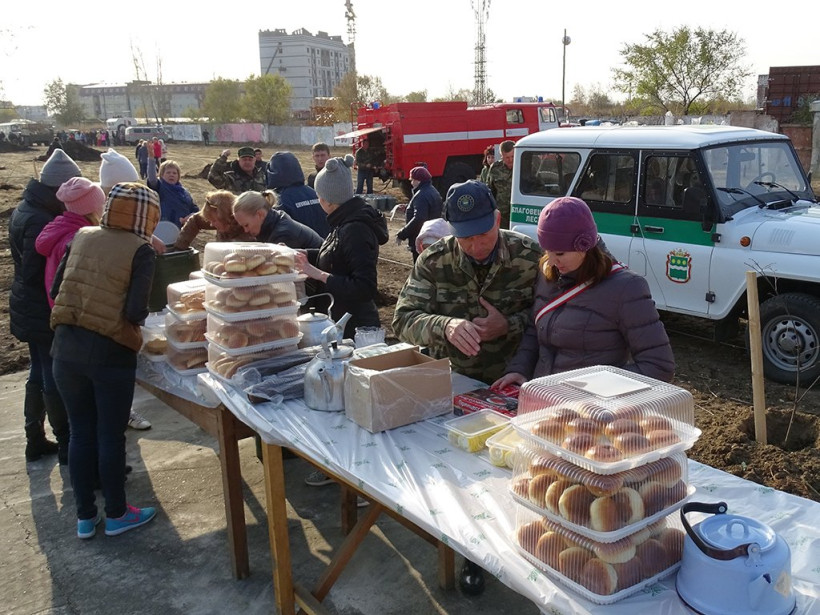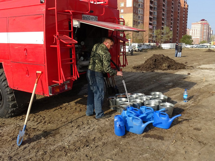 В озеленении города приняли участие члены правительства области во главе с губернатором, сотрудники Амурского центра ГЗ и ПБ и МЧС, студенты и инициативные горожане.