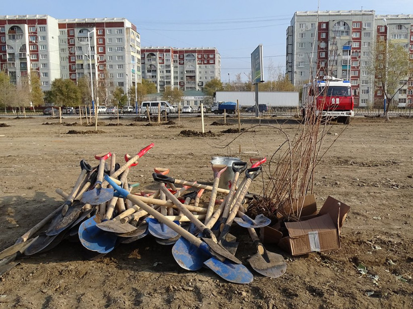 На подготовку места под будущий сквер ушла неделя, сообщает пресс-служба ГКУ «Амурский центр ГЗ и ПБ». Сотрудники министерства лесного хозяйства и пожарной безопасности Приамурья, «Зеленстроя», дорожно-строительных организаций города убирали мусор, засыпали ямы, выравнивали площадку, готовили лунки под саженцы. Было завезено около 100 машин песка и около 30 — чернозёма.
