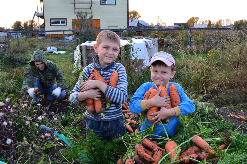 Сейчас начинающие фермеры только входят в непростой ритм жизни с большим хозяйством — в этом помогают родственники. Подрастают и свои помощники — в семье молодых супругов восемь детей.