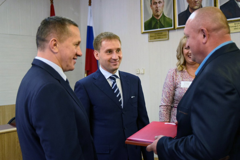 Губернатор Александр Козлов также поздравил обладателей сертификата, поблагодарил за участие полпреда президента и пригласил выступить заслуженного агрария области Георгия Уса.