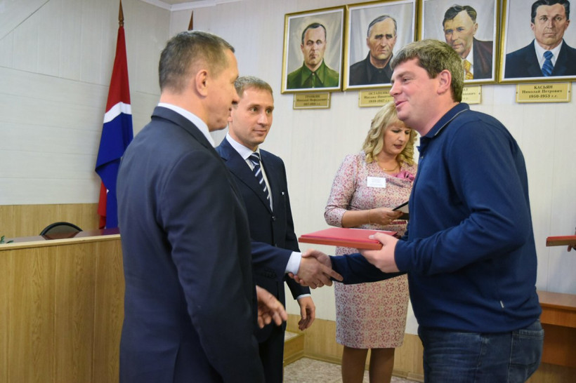 Затем делегация перемещается в зал для вручения сертификатов. Несколько минут — и первые обладатели гектаров в Ивановском районе держат в руках официальное подтверждение своих прав на выбранную землю.