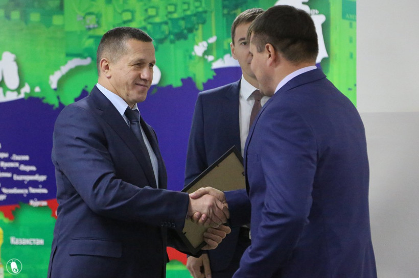 Территория опережающего развития «Приамурская» официально получила двух новых резидентов. Сертификаты руководителям компаний «Агрохим ДВ» и «Бисолби-Благовещенск» вручил сегодня, 21 сентября, вице-премьер, полпред в ДФО Юрий Трутнев. С торжественной церемонии началось совещание, посвященное работе ТОР в Амурской области, которое прошло на базе одного из резидентов — маслоэкстракционного завода «Амурский».