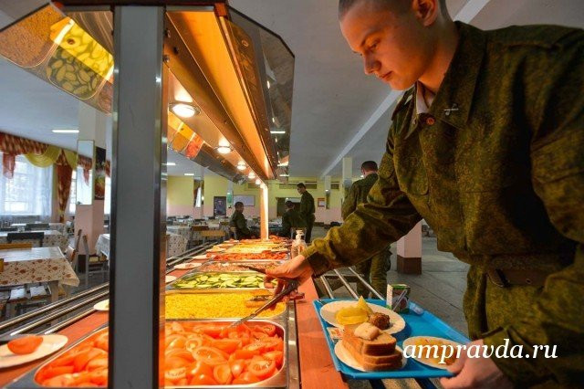По действующим нормативам в столовых военнослужащим предлагают на выбор не менее 2-3 блюд на каждый прием пищи и 5 видов салатов в салат-баре, который организован по принципу шведского стола. Блюда готовятся с учетом пожеланий военнослужащих, которые они сами вносят через автоматизированную систему контроля питания. Терминалы данной системы в текущем году установлены во все столовые объединения в Приамурье, уточняют в штабе ВВО.