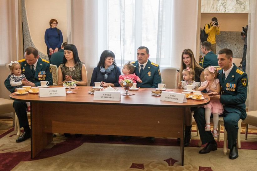 Трех храбрых и сильных мужчин — отцов больших семейств, а по совместительству сотрудников управления МЧС, чествовали сегодня, 25 октября, за чашкой чая в Тронном зале Дворца бракосочетания амурского загса. Торжественное и трогательное мероприятие в Благовещенске было посвящено Дню отца — празднику, который появился в России совсем недавно. В Приамурье мужчин по такому поводу собрали впервые. На мужественных пап полюбовались и корреспонденты «Амурской правды».