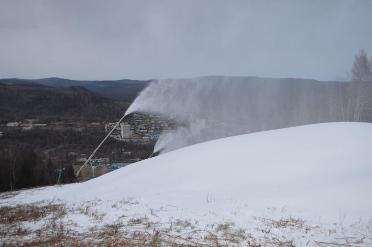 На горнолыжном спуске в Тынде включили снежные пушки