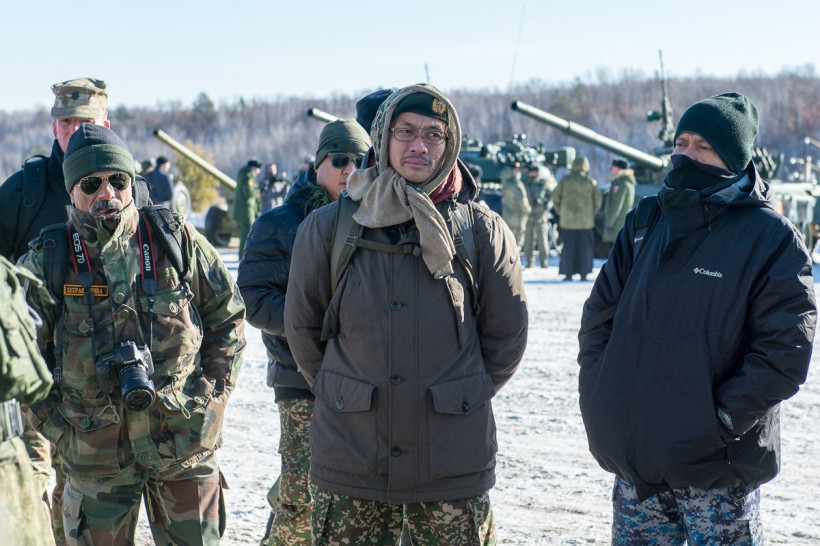 Атташе продемонстрировали и разные виды экипировки для горных подразделений, арктических стрелков, в том числе специальные приспособления для выполнения задач в сложных метеоусловиях, таких как снег и ветер. Основная же одежда для военных — современный «Ратник». Он включает в себя не только бронежилет, рейдовый и боевой рюкзак, наколенники, налокотники, но и перчатки, очки, наушники и прибор ночного видения. Показали высоким гостям и гордость амурских военных — уникальную систему разведки, управления и связи «Стрелец», предназначенную для спецподразделений. Завершилась демонстрация практической стрельбой из тяжелой техники: БМП, БТР и танков Т-80.