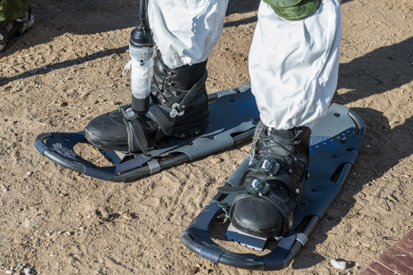 Зимняя современная экипировка у курсантов-горников, которые должны в сложных условиях выполнять боевые задачи, — многослойная, способная выдерживать разную температуру воздуха. В ней есть три слоя «утеплителя»: костюм из холлофайбера, флиса и альпинистское белье. Все составляющие можно снимать по очереди или, наоборот, надевать. Специальная обувь предназначена для скальной подготовки, работы на ледниках и на снегу.