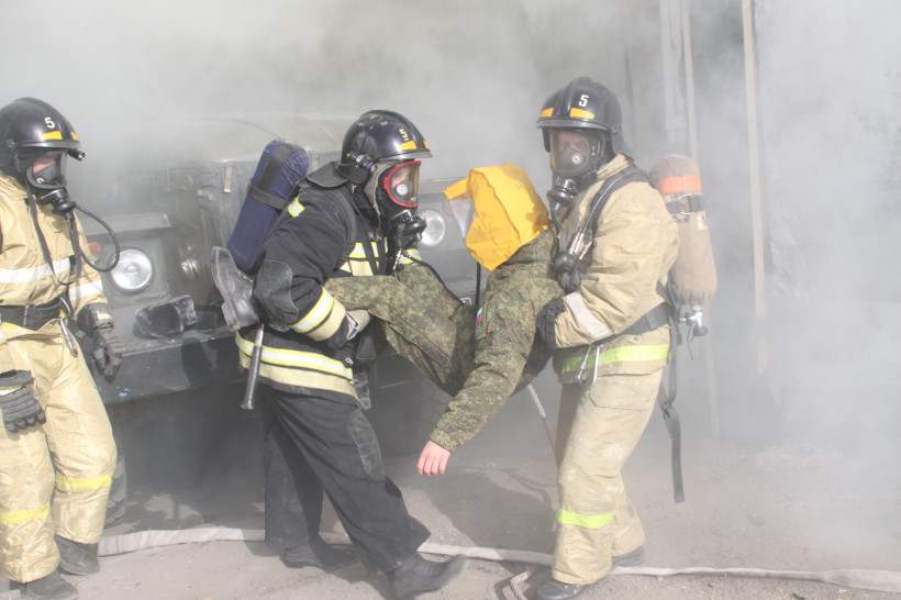 В боксах огонь локализовали водой, а эвакуированную горящую технику залили изолирующей пеной на открытой стоянке. Военные медики провели реанимационные мероприятия с военнослужащими, пострадавшими от дыма и огня.