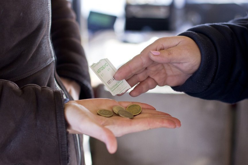 Девушка передо мной протягивает водителю тысячную купюру. Тот пыхтя, но молча выгребает из всех возможных закромов все возможные бумажные деньги. Расчет довершает горсть мелочи.