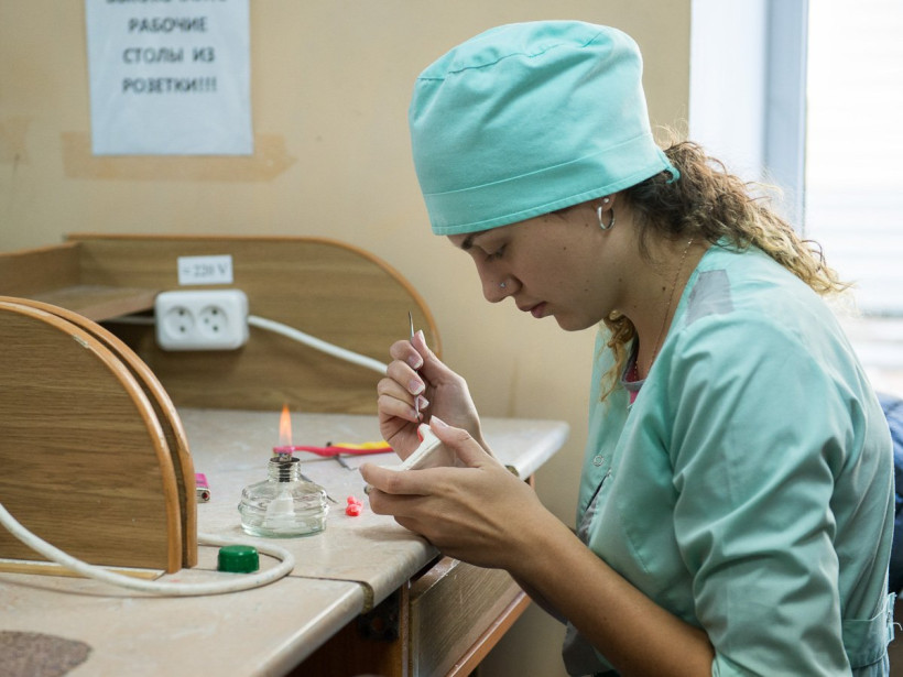 На лаборантов и зубных техников в Амурский медколледж едут учиться слабослышащие и глухие со всего ДФО — из Читы, Хабаровска, Владивостока, южной Якутии. Ближайший такой колледж для ребят с этим недугом — в Пензе. В общей сложности сейчас в Амурском медколледже профессию получают 35 студентов с нарушениями слуха. Они учатся бесплатно в течение 4 лет и живут в общежитии в отдельной секции.